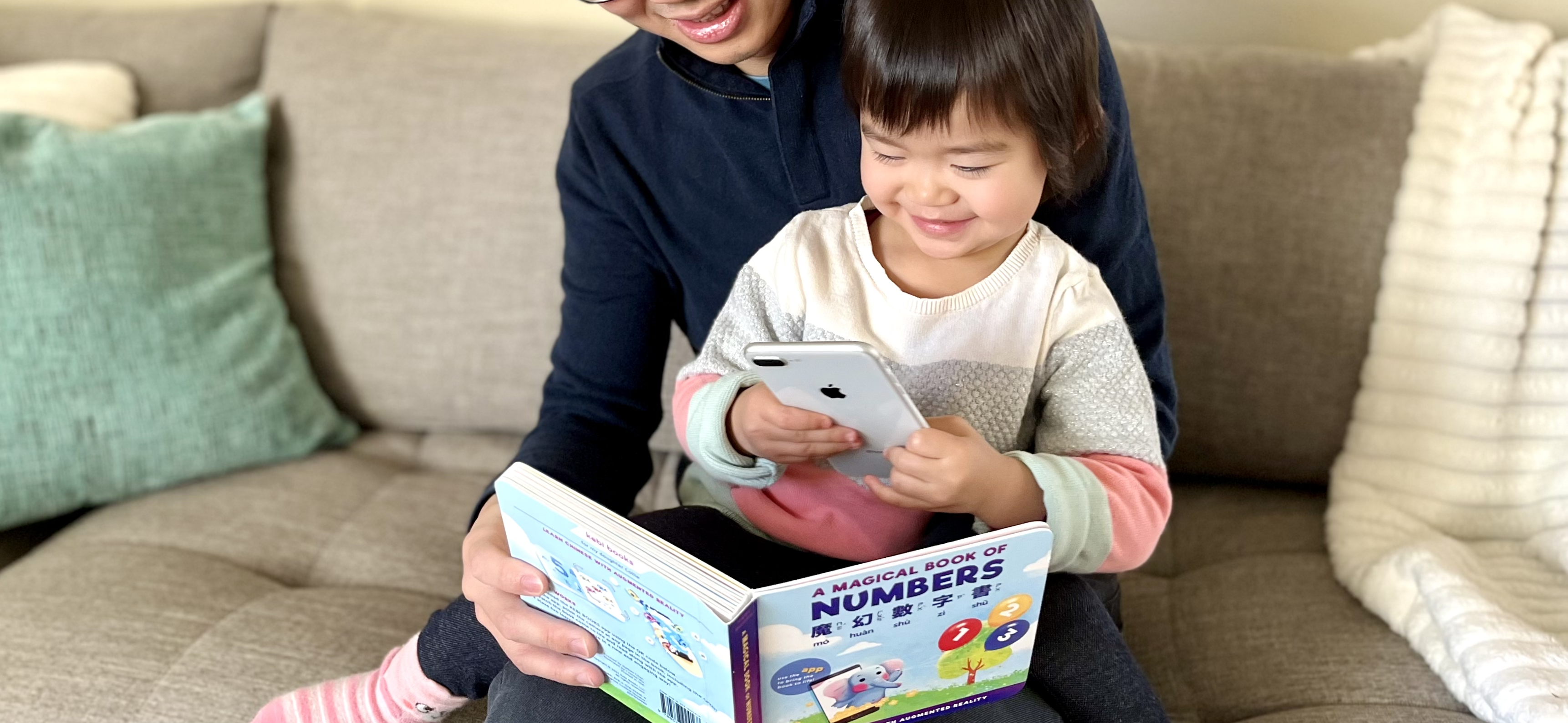 Using the companion Kebi Books iOS app, simply point your camera at any page in the book and watch it come to life in animation, while a native Chinese speaker reads the characters on the page. You'll hear Chinese pronunciation accompanied by magical AR effects, encouraging your young language learner to count along. Without needing to be a native speaker yourself, you'll be able to support your child's language learning journey!